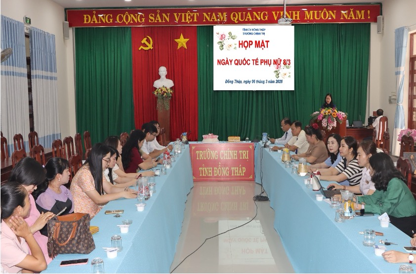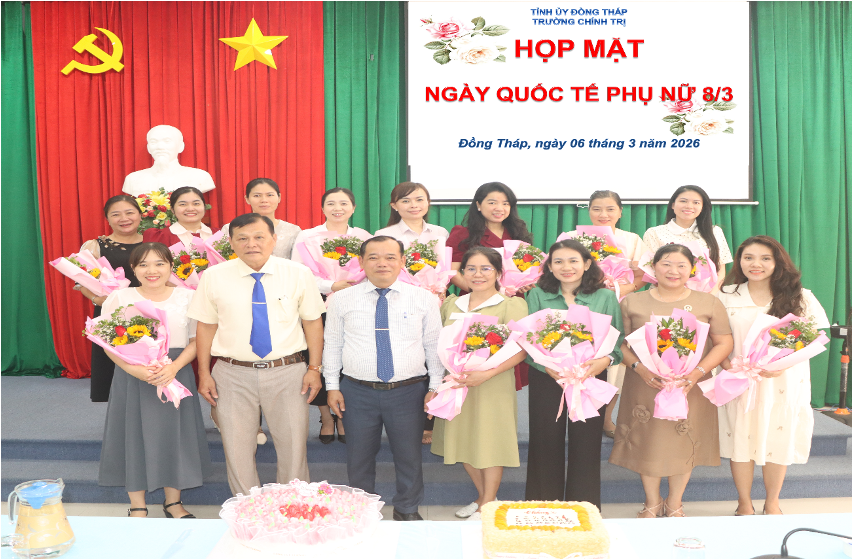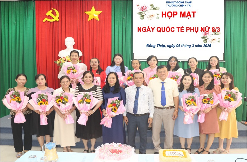 Sáng 06/3/2026, Trường Chính trị tỉnh Đồng Tháp tổ chức họp mặt kỷ niệm 116 năm Ngày Quốc tế Phụ nữ (08/3/1910 - 08/3/2026), nhằm tri ân, tôn vinh những đóng góp của đội ngũ nữ viên chức, người lao động đang công tác tại Trường; đồng thời khích lệ tinh thần phấn đấu, phát huy vai trò của phụ nữ trong thực hiện nhiệm vụ chính trị của đơn vị.