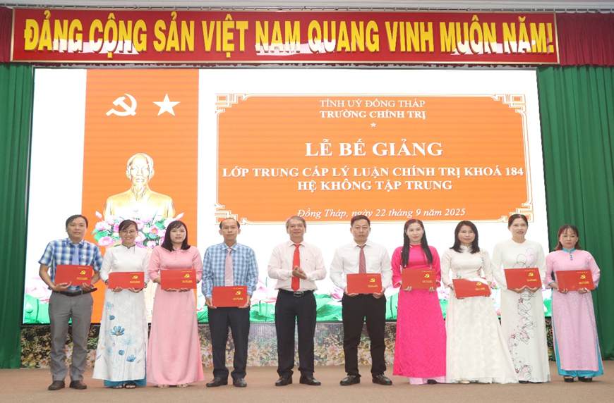 Chiều ngày 22/9/2025, tại Trung tâm Chính trị xã Phú Hựu, Trường Chính trị Tỉnh phối hợp với Đảng uỷ xã Phú Hựu tổ chức Lễ Bế giảng lớp Trung cấp Lý luận chính trị, hệ không tập trung, khóa 184 (C184).