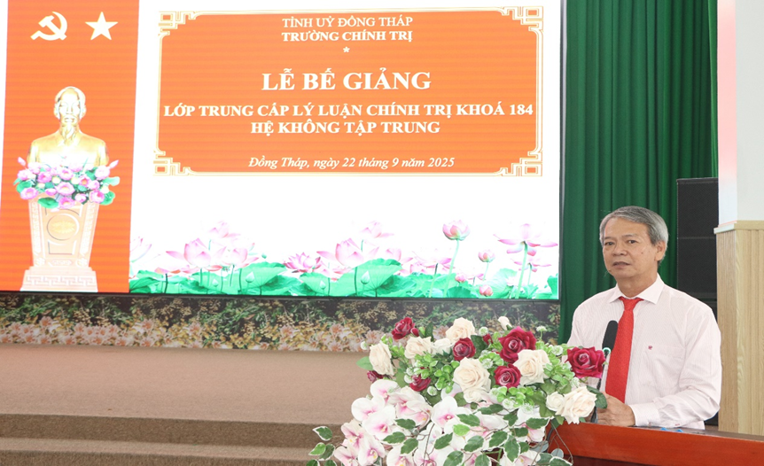 Đồng chí Nguyễn Thanh Tùng, lớp trưởng, đại diện tập thể lớp gửi lời cảm ơn đến Ban Tổ chức Tỉnh uỷ Đồng Tháp, Trường Chính trị tỉnh Đồng Tháp, lãnh đạo các cơ quan, đơn vị và các thầy, cô giáo đã tạo điều kiện thuận lợi để 50 đồng chí học viên hoàn thành khoá học và bày tỏ quyết tâm không ngừng học tập, bổ sung những kiến thức mới, chuyên sâu, nâng cao năng lực chuyên môn, rèn luyện phẩm chất đạo đức, tư tưởng chính trị, kỷ luật, vận dụng sáng tạo các kiến thức lý luận đã được học tập vào thực tiễn công tác tại cơ quan, đơn vị.