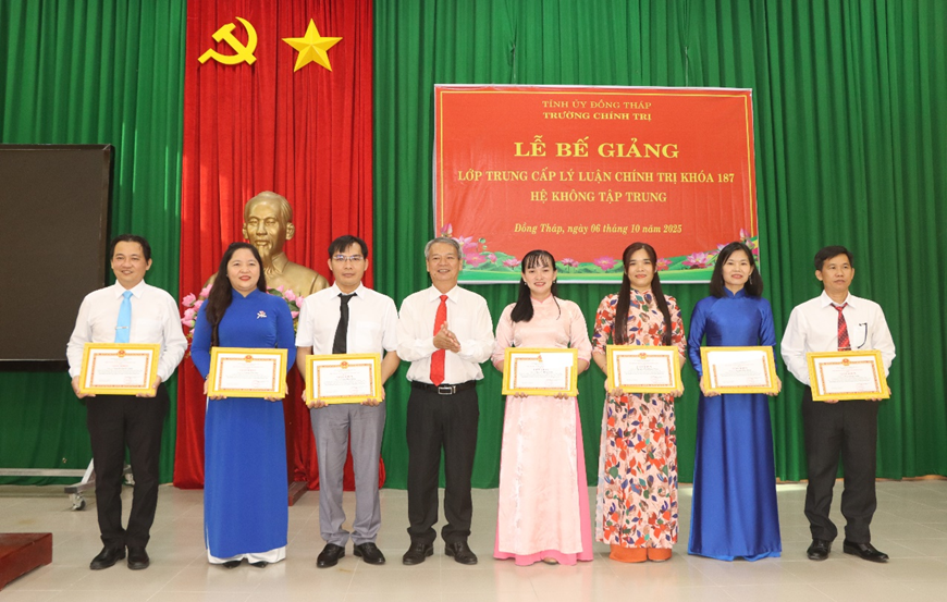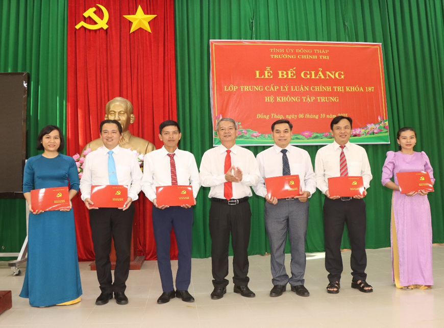 Tham dự Lễ Bế giảng, về phía Đảng uỷ các xã có các đồng chí: Lương Văn Ngoan, Phó Bí thư Thường trực Đảng uỷ xã Tháp Mười; đồng chí Nguyễn Văn Định, Bí thư Đảng uỷ - Chủ tịch HĐND xã Đốc Binh Kiều; đồng chí Lương Văn Út, Phó Bí thư Thường trực Đảng uỷ xã Trường Xuân; đồng chí Nguyễn Minh Hiếu, Phó Bí thư Thường trực Đảng uỷ xã Phương Thịnh; đồng Nguyễn Văn Mãnh, Phó Bí thư Thường trực Đảng uỷ xã Thanh Mỹ. Về phía Trung tâm Chính trị xã Tháp Mười có các đồng chí: Nguyễn Thị Tuyết Mai, Uỷ viên Ban Thường vụ Đảng uỷ, Trưởng ban Xây dựng Đảng - Giám đốc Trung tâm Chính trị; đồng chí Nguyễn Thanh Nga, Phó Giám đốc Trung tâm Chính trị. Về phía Trường Chính trị Tỉnh có đồng chí TS. Nguyễn Phước Dũng, Tỉnh uỷ viên, Bí thư Đảng uỷ, Hiệu trưởng Trường Chính trị Tỉnh; giáo viên chủ nhiệm và 67 học viên lớp Trung cấp Lý luận chính trị C187.
