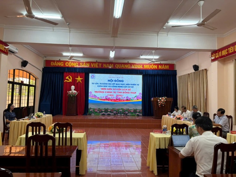 Sáng ngày 27 tháng 10 năm 2025, Trường Chính trị tỉnh Đồng Tháp tổ chức buổi tư vấn, tự đánh giá nhiệm vụ khoa học và công nghệ cấp cơ sở “Biên niên sự kiện lịch sử Trường Chính trị tỉnh Đồng Tháp (1955-2025)” do TS. Võ Thị Tuyết Hoa làm chủ nhiệm.
