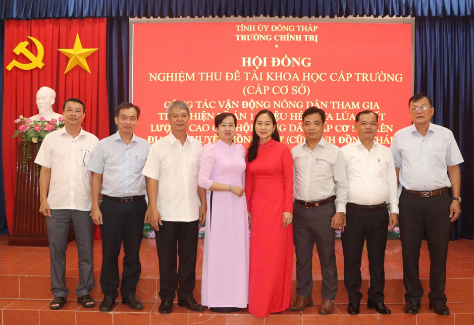 Sáng ngày 06/10/2025, tại cơ sở 2, Trường Chính trị tỉnh Đồng Tháp, Hội đồng đánh giá, nghiệm thu kết quả thực hiện nhiệm vụ khoa học và công nghệ cấp trường (cấp cơ sở) đã tiến hành họp nghiệm thu đề tài “Công tác vận động nông dân tham gia thực hiện Đề án 1 triệu héc-ta lúa chất lượng cao của Hội Nông dân cấp cơ sở trên địa bàn huyện Hồng Ngự (cũ), tỉnh Đồng Tháp”.