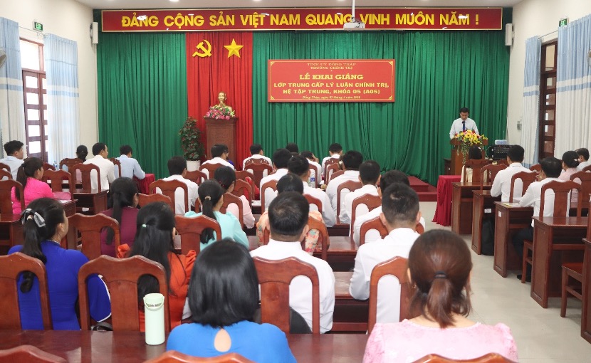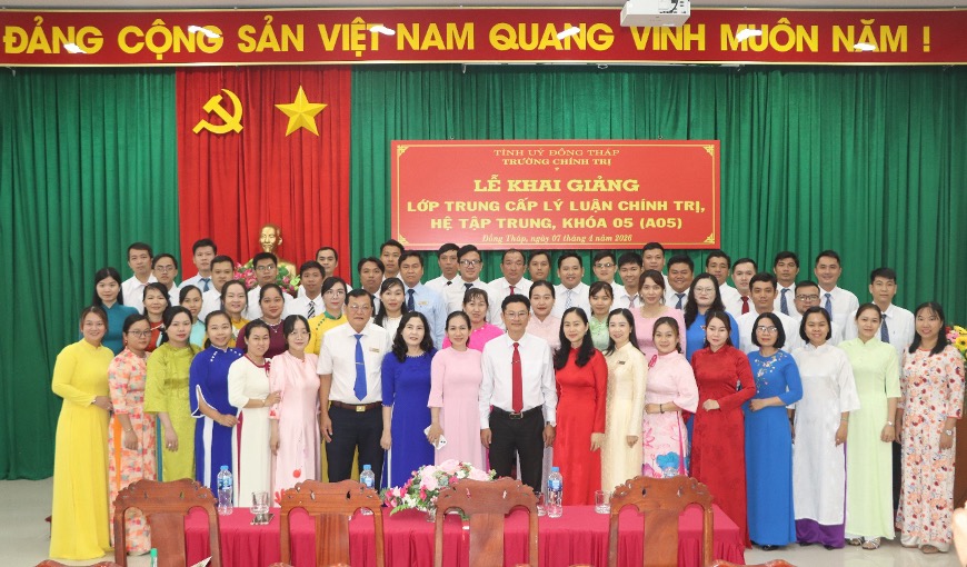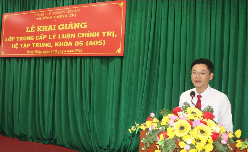 Sáng ngày 07/4/2026, Trường Chính trị tỉnh Đồng Tháp tổ chức Lễ khai giảng lớp Trung cấp lý luận chính trị, hệ tập trung, khóa 05 (A05), thực hiện Kế hoạch số 56-KH/TCT ngày 20/1/2026 về đào tạo, bồi dưỡng cán bộ, công chức, viên chức năm 2026.