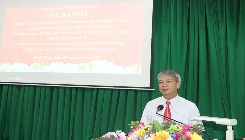 Sáng ngày 29/9/2025, tại Hội trường số 002 (Cơ sở 1), đã tổ chức công bố và ra mắt Trang thông tin điện tử Trường Chính trị tỉnh Đồng Tháp. Đến dự có các đồng chí: TS. Nguyễn Phước Dũng, Tỉnh uỷ viên, Bí thư Đảng uỷ, Hiệu trưởng; ThS. Nguyễn Văn Sơn, Phó Bí thư Đảng uỷ, Phó Hiệu trưởng; ThS. Nguyễn Minh Phương, Uỷ viên Ban Thường vụ Đảng uỷ, Phó Hiệu trưởng cùng toàn thể viên chức, giảng viên Trường Chính trị Tỉnh.