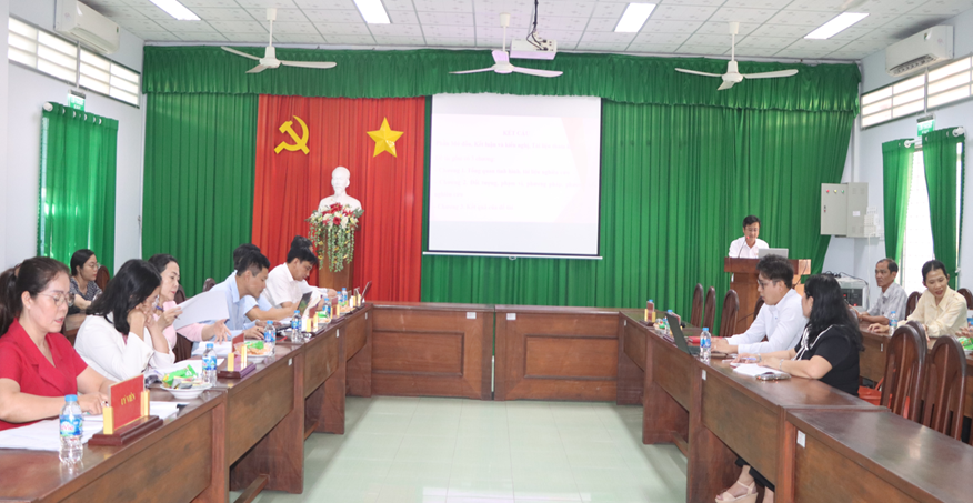 Tham dự cuộc họp có ThS. Nguyễn Minh Phương, Phó Hiệu trưởng Trường Chính trị tỉnh Đồng Tháp; ThS. Cao Thị Tuyết Loan, giảng viên Trường Đại học Tiền Giang và các thành viên hội đồng tư vấn, tự đánh giá; giảng viên, viên chức nhà trường và nhóm thực hiện nhiệm vụ khoa học và công nghệ.
