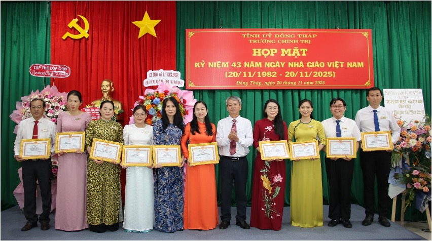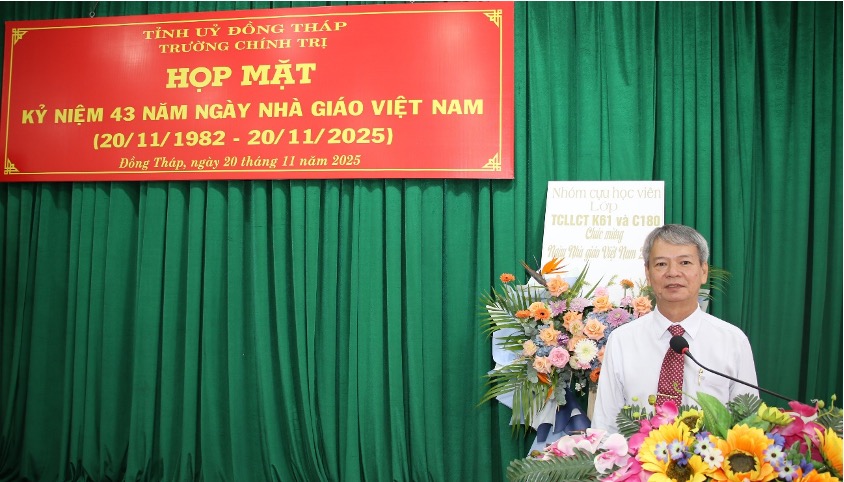 Lễ kỷ niệm 43 năm Ngày Nhà giáo Việt Nam tại Trường Chính trị tỉnh Đồng Tháp là dịp để tri ân, lan tỏa tinh thần tôn sư trọng đạo, khẳng định vai trò của Nhà trường trong sự nghiệp đào tạo, bồi dưỡng cán bộ của tỉnh; đồng thời tạo động lực để mỗi giảng viên tiếp tục phấn đấu, cống hiến cho sự nghiệp giáo dục và phát triển của Đồng Tháp.