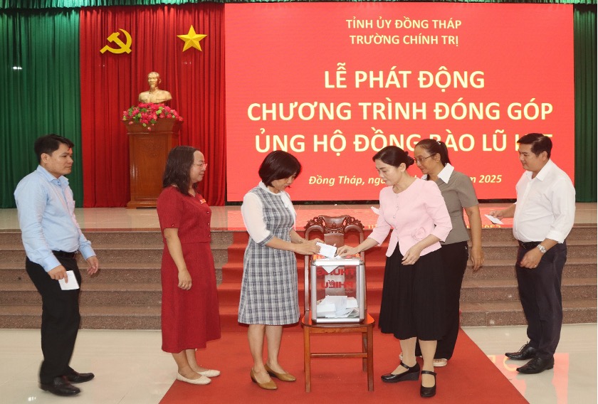 Thực hiện Lời kêu gọi ủng hộ đồng bào khắc phục thiệt hại do cơn bão số 9, bão số 10 gây ra của Uỷ ban Mặt trận Tổ quốc Việt Nam tỉnh Đồng Tháp. Phát huy truyền thống đoàn kết, tương thân tương ái, “lá lành đùm lá rách”, Sáng ngày 29/10/2025, tại Hội trường, Trường Chính trị tỉnh Đồng Tháp tổ chức Lễ phát động ủng hộ đồng bào các địa phương khu vực Bắc bộ và Bắc Trung bộ bị thiệt hại do bão số 10 (Bualoi) gây ra.